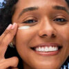 - Gently sweep over each eyelid and dab brow bone to firm and correct crepiness.